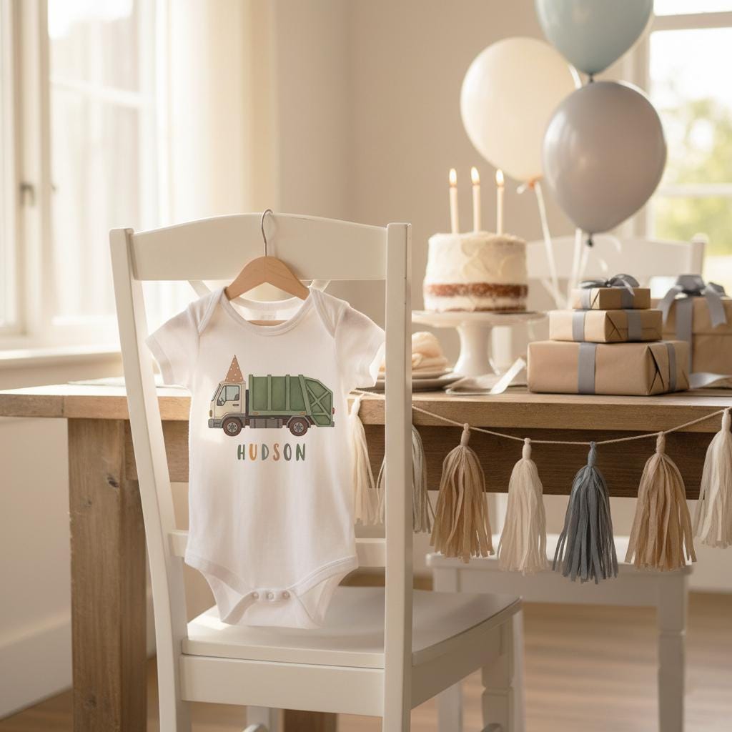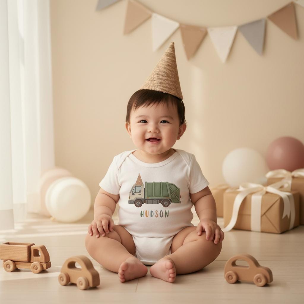 Every little truck lover lights up when they see their favorite things — and this sweet garbage-truck bodysuit or tee brings that joy to their everyday moments. Personalize it with your baby’s name for an extra-special keepsake that parents, grandparents, and friends adore. It’s perfect for everyday wear, baby photos, or gifting at showers and birthdays.